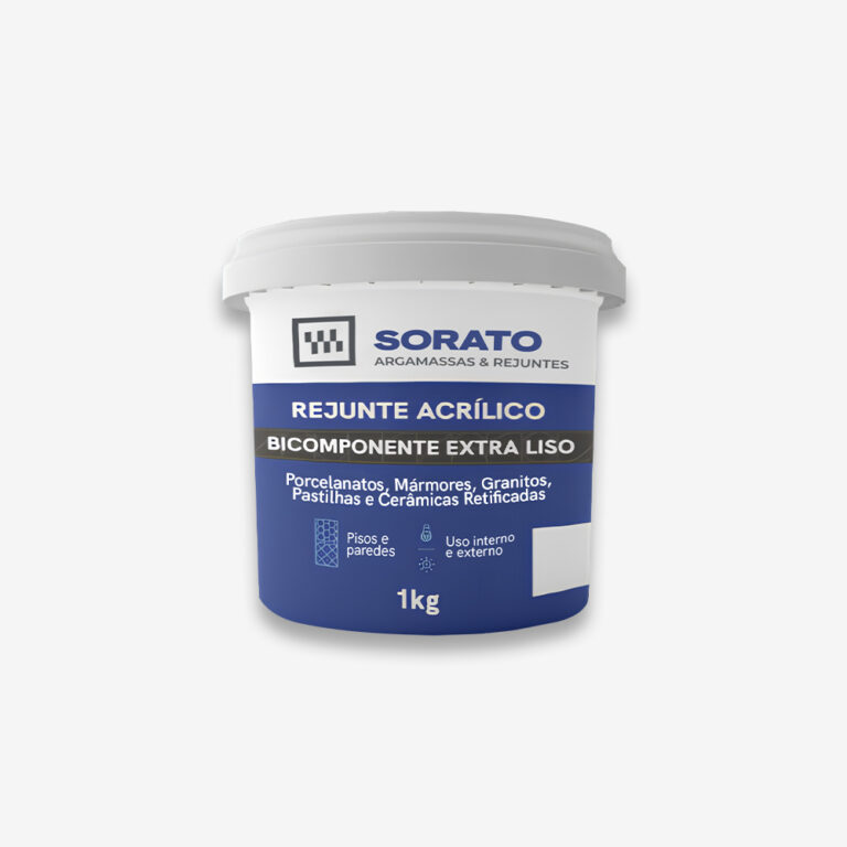 O Rejunte Acrílico Sorato foi desenvolvido para um rejuntamento especial, possui em sua composição resinas acrílicas, aglomerantes e cargas minerais, sendo assim é indicado para porcelanatos, mármores, granitos e cerâmicas retificadas com juntas de 0,5 a 5 mm. Feito de acordo com a Norma Brasileira – NBR 14081, não contém areia em sua composição, oferecendo um acabamento liso e de fácil aplicação, cores uniformes e duráveis.